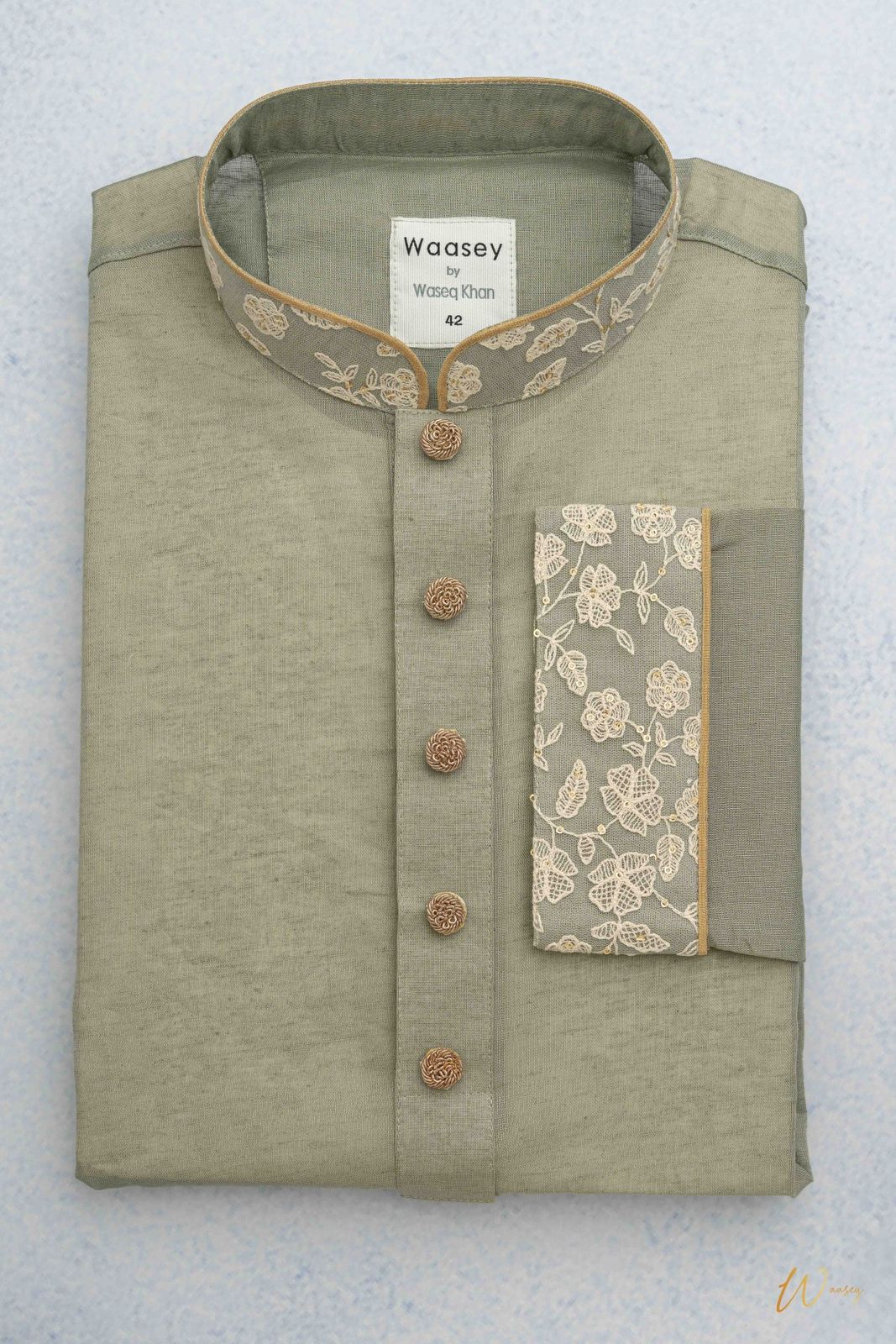 Sage Green Panjabi with Designer Cuff Panel