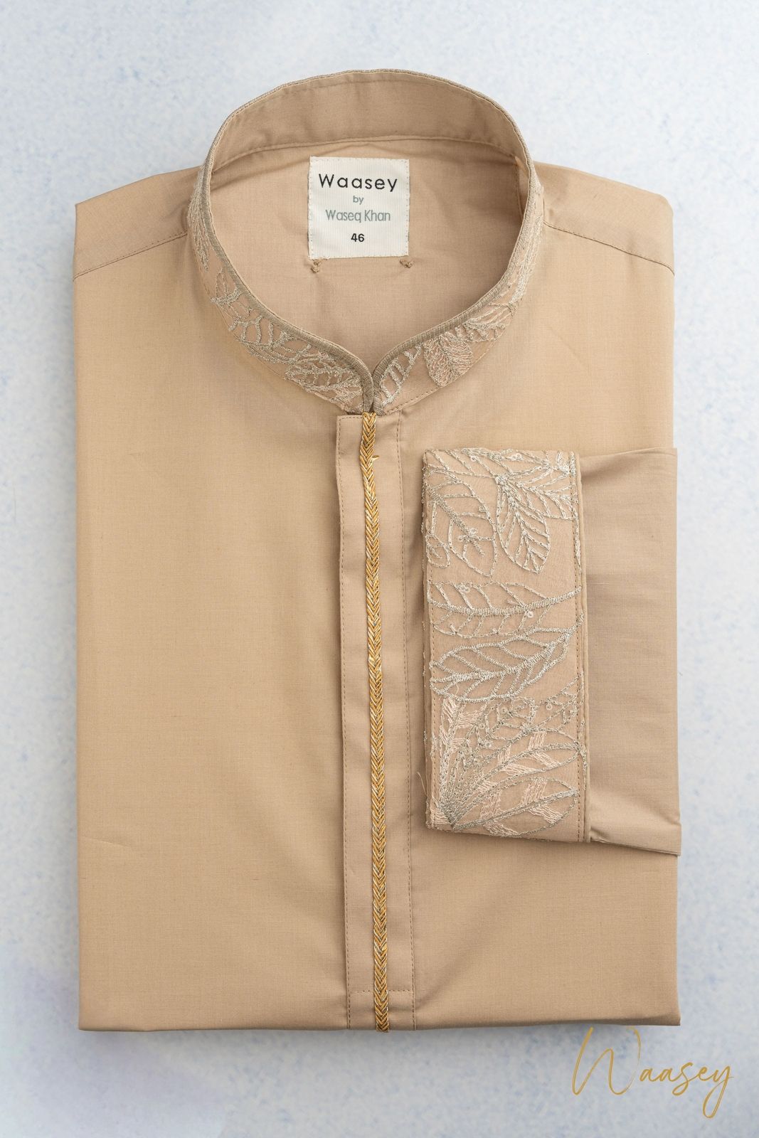 Khaki Panjabi with Gold Embroidered Placket