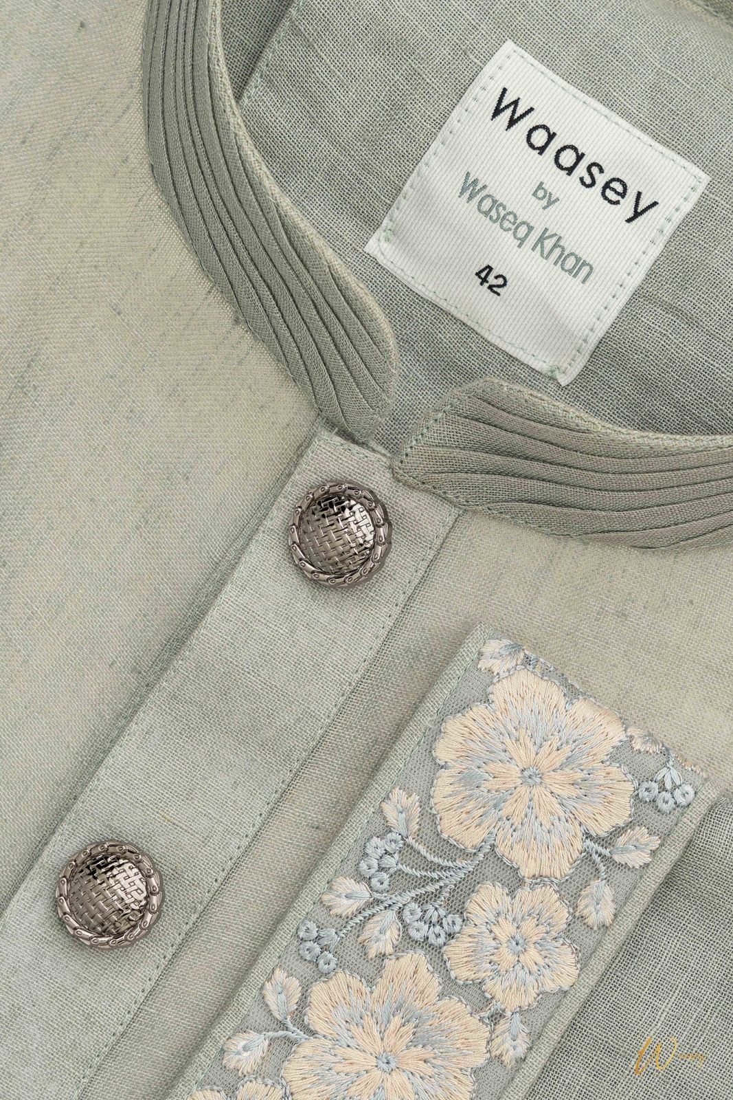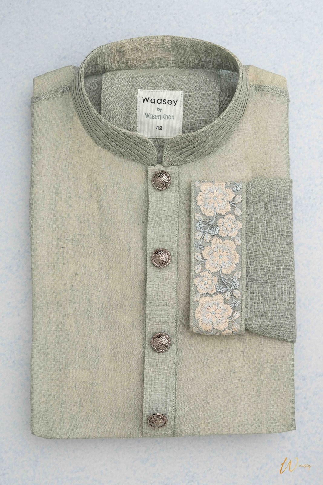 Pastel Pink Panjabi with Embroidered Floral Collar