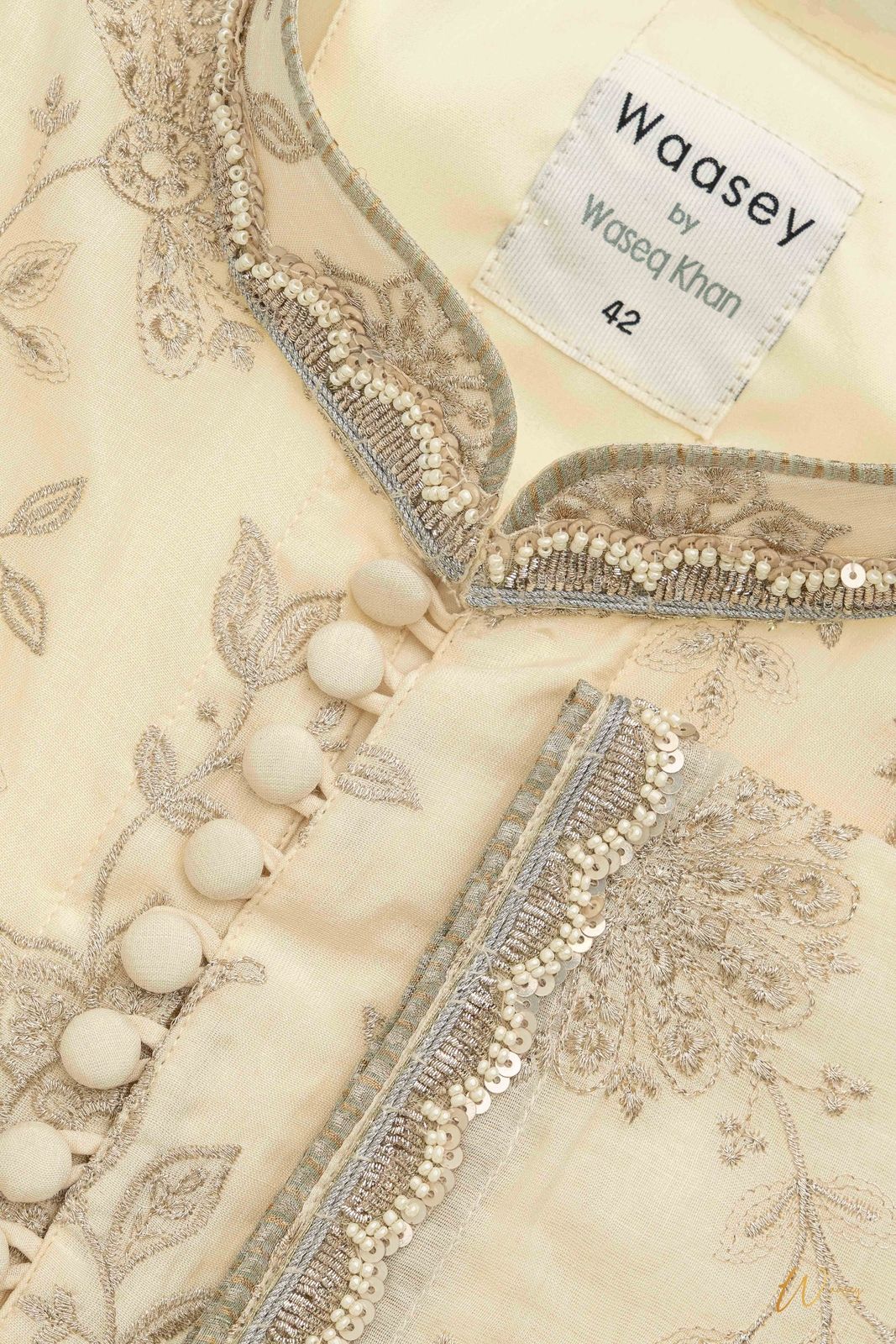 Ivory Panjabi with Gold Floral Embroidery