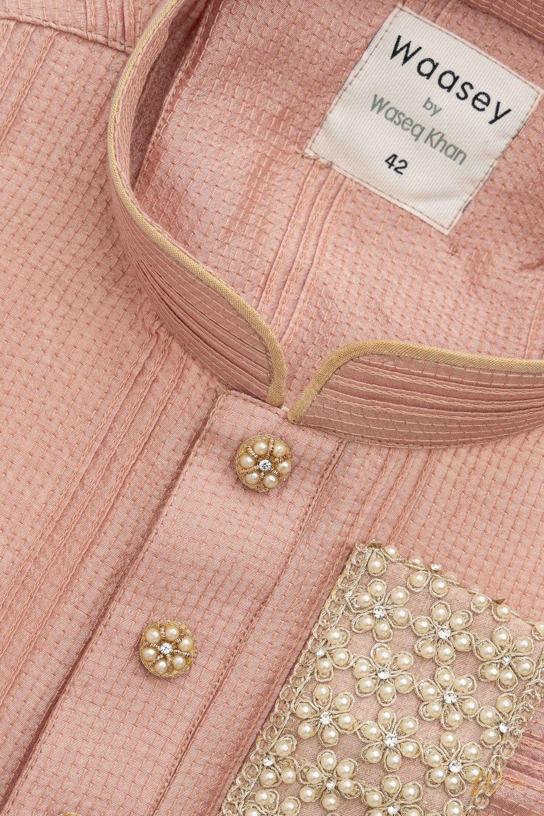 Pastel Pink Panjabi with Embroidered Floral Collar