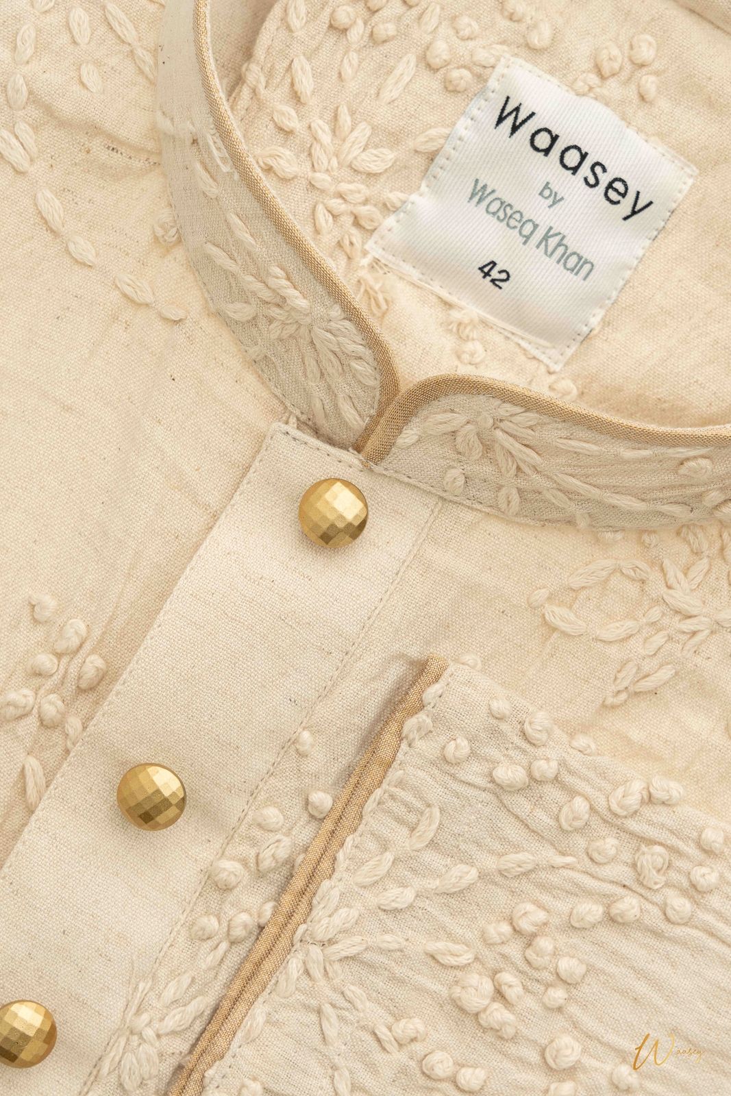 Ivory Embroidered Panjabi with Gold Buttons