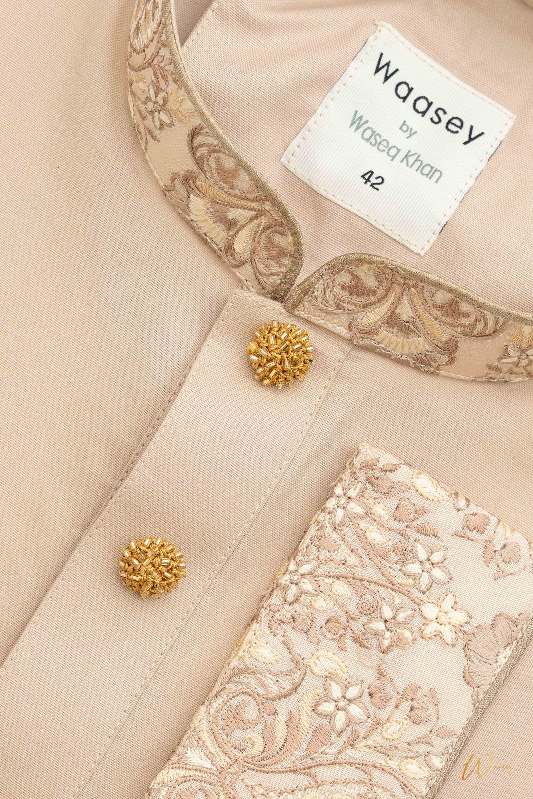 Beige Panjabi with Gold Embroidered Collar