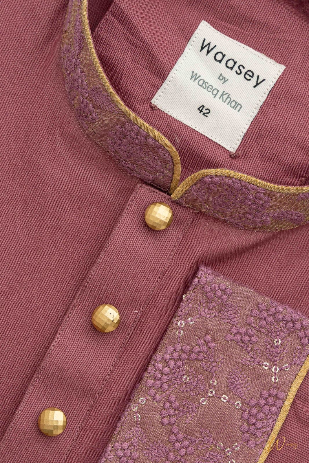 Pastel Pink Panjabi with Embroidered Floral Collar
