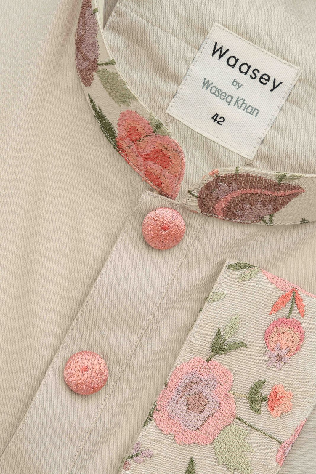 Pastel Pink Panjabi with Embroidered Floral Collar