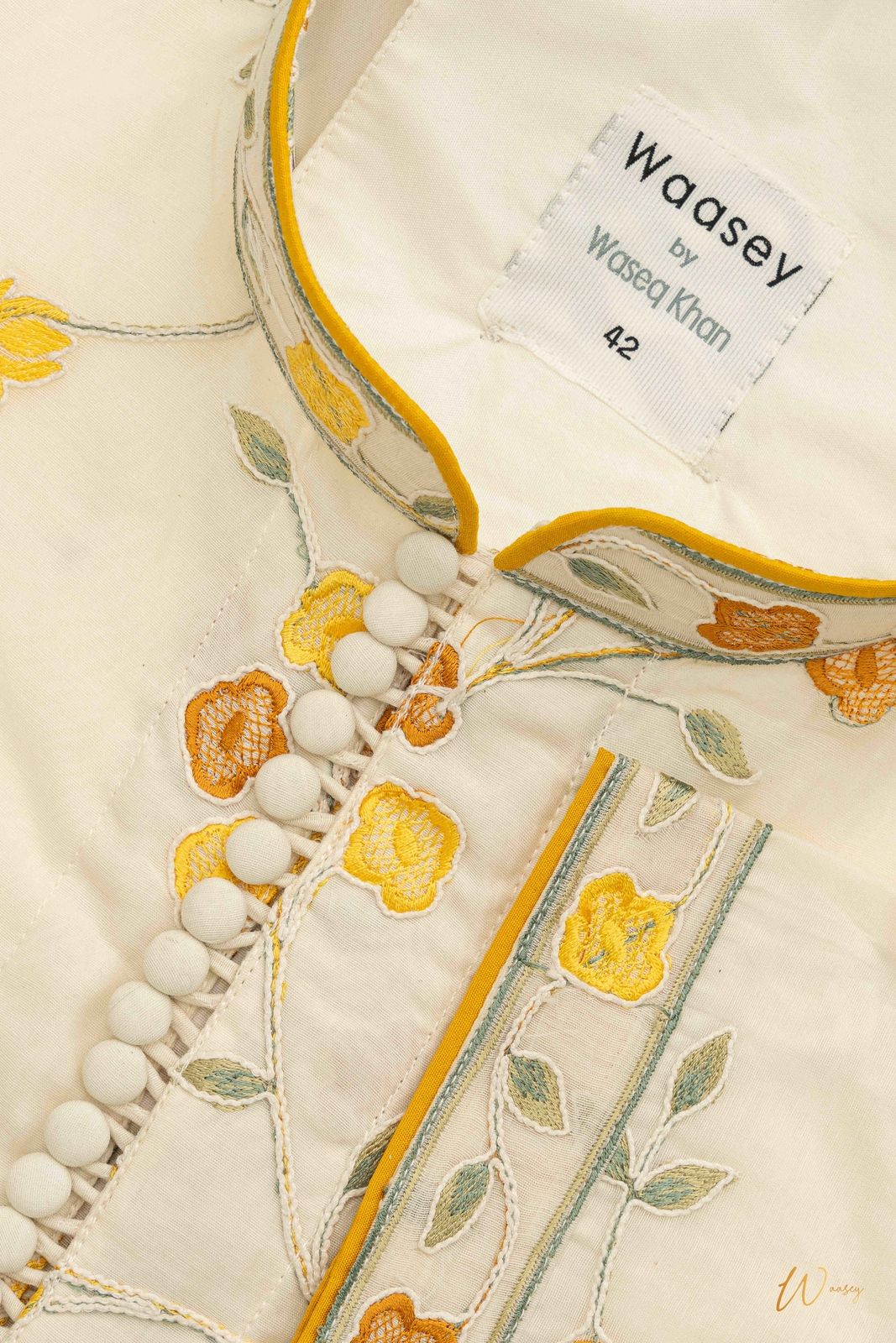 Cream Panjabi with Embroidered Floral Collar