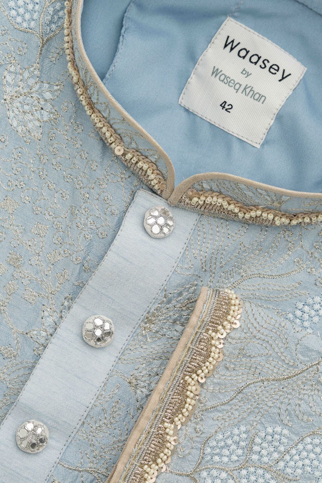 Sky Blue Panjabi with Gold Floral Embroidery
