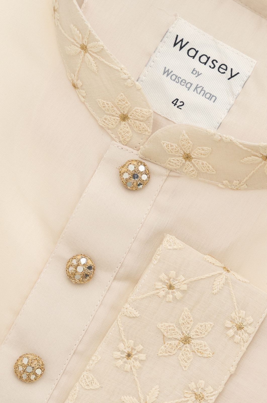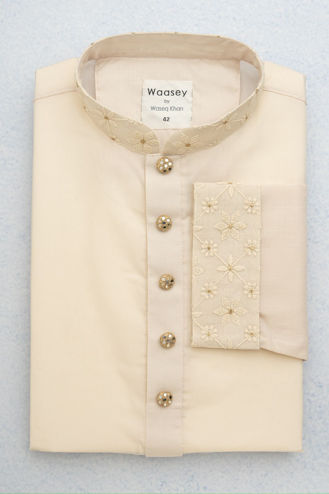 Light Cream Panjabi with Golden Floral Embroidery