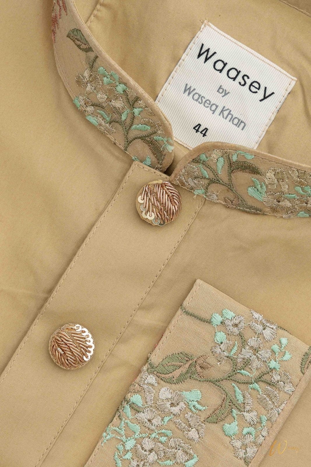 Beige Panjabi with Embroidered Floral Collar