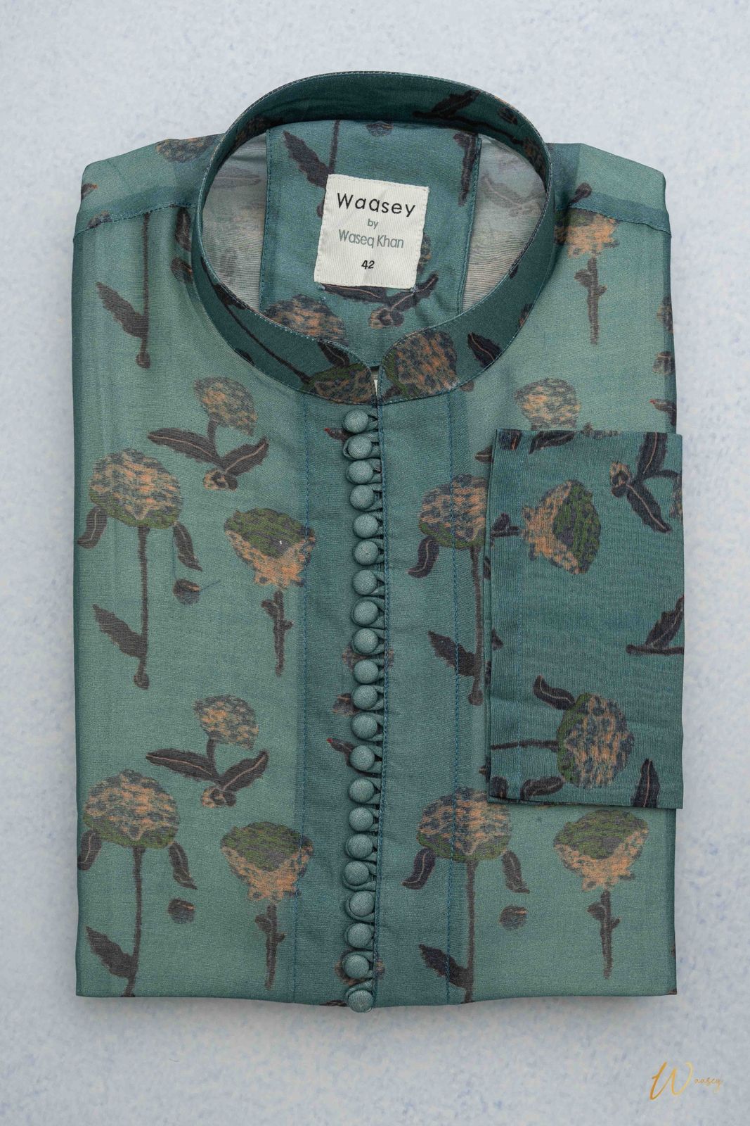 Emerald Green Panjabi with Floral Embroidery