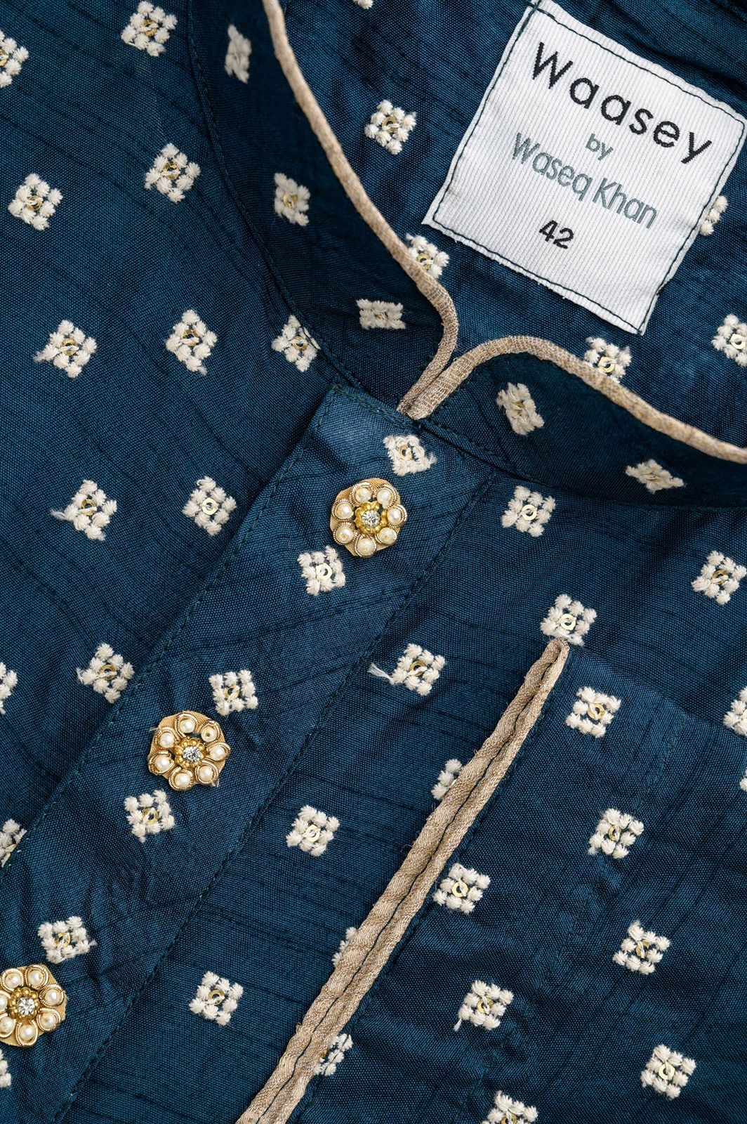 Black Panjabi with White Floral Embroidery