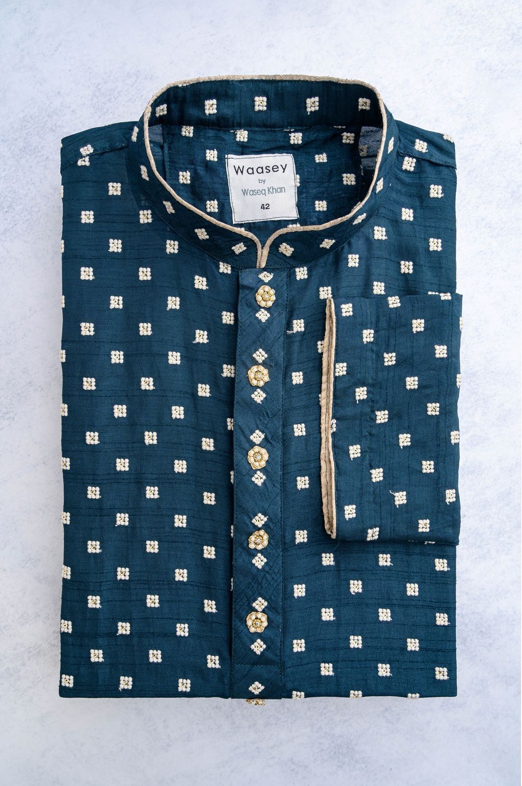 Light Cream Panjabi with Golden Floral Embroidery